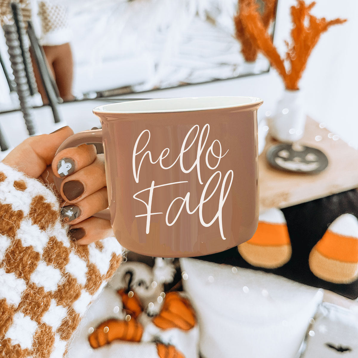 - Cute hello fall mug with modern neutral design