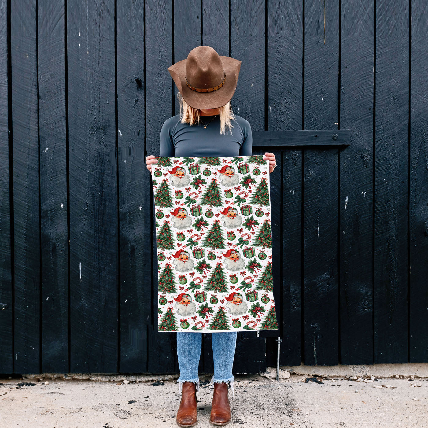 Ho ho hold up! Our vintage Santa Christmas kitchen towel is basically like having the entire North Pole's gift wrap department scattered across your kitchen in the most delightful way possible. With jolly vintage Santa faces, candy canes, wrapped presents, mistletoe, festive bows, and Christmas trees dancing all over this towel, it's like Christmas threw a party and forgot to clean up - and we're absolutely here for it!