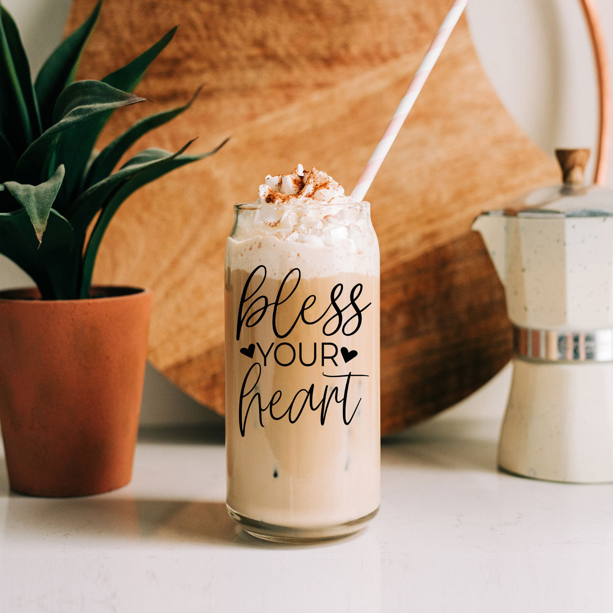 Perfectly charming with just a hint of sass, this 20oz glass cup proudly declares “Bless Your Heart,” making it the ideal companion for those moments when you want to sprinkle a little sweetness (and shade) into your day. Whether you're sipping coffee, tea, or your favorite cocktail, this cup reminds you that sometimes, all you can do is smile and nod—bless their hearts!