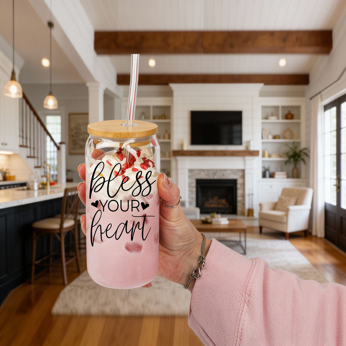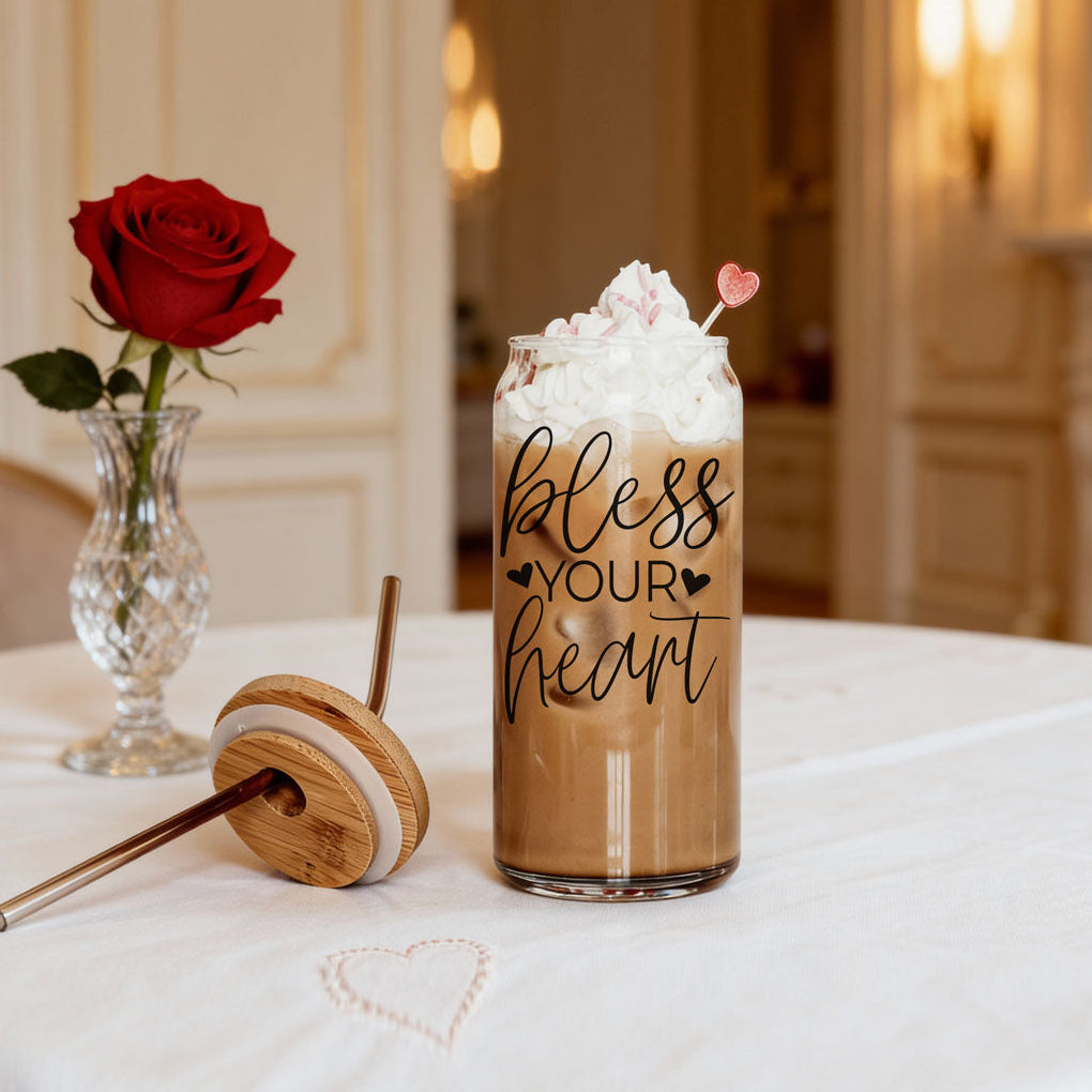 ✨ Bless Your Heart Glass Cup with Bamboo Lid ✨