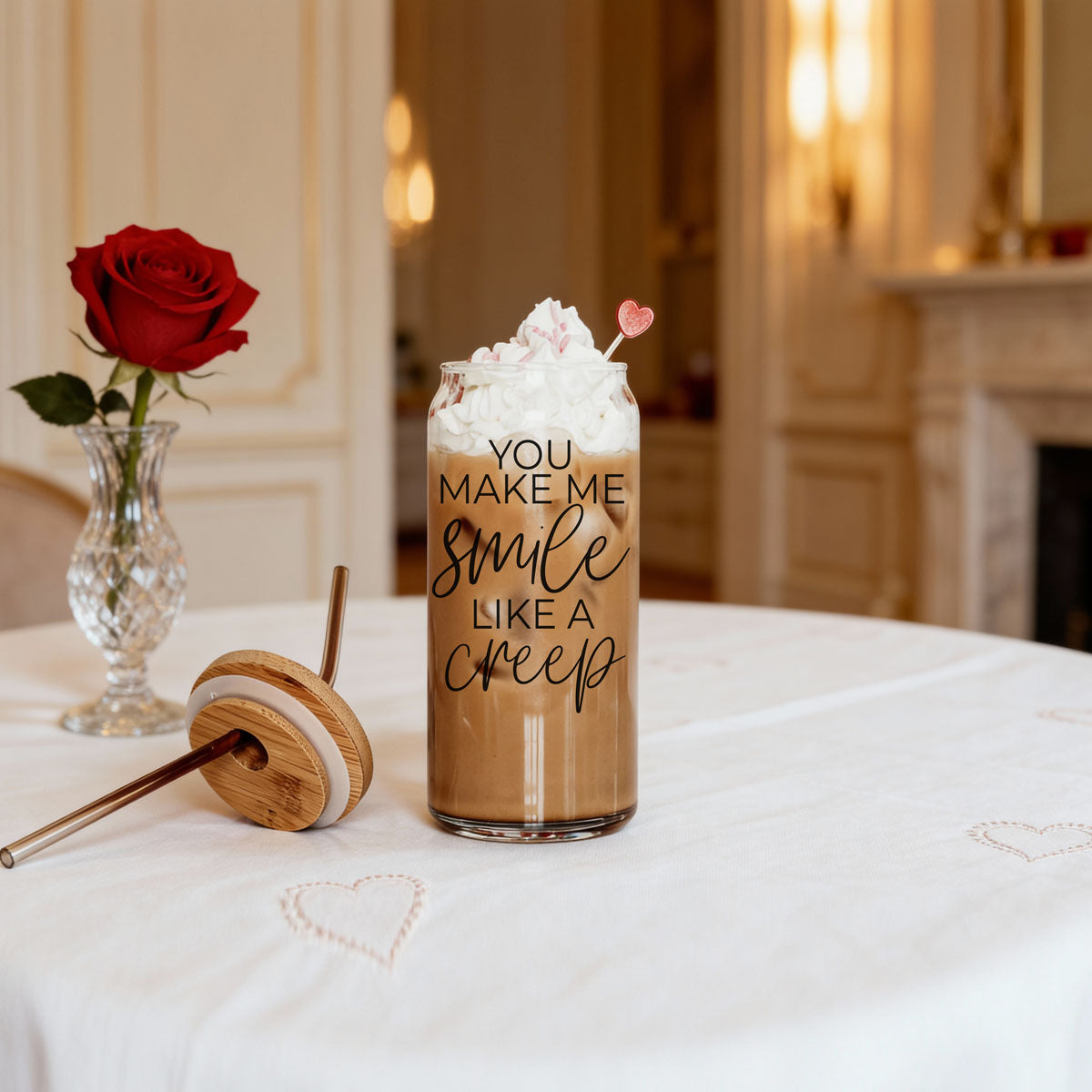 😏 You Make Me Smile Like a Creep Glass Cup with Bamboo Lid 😏