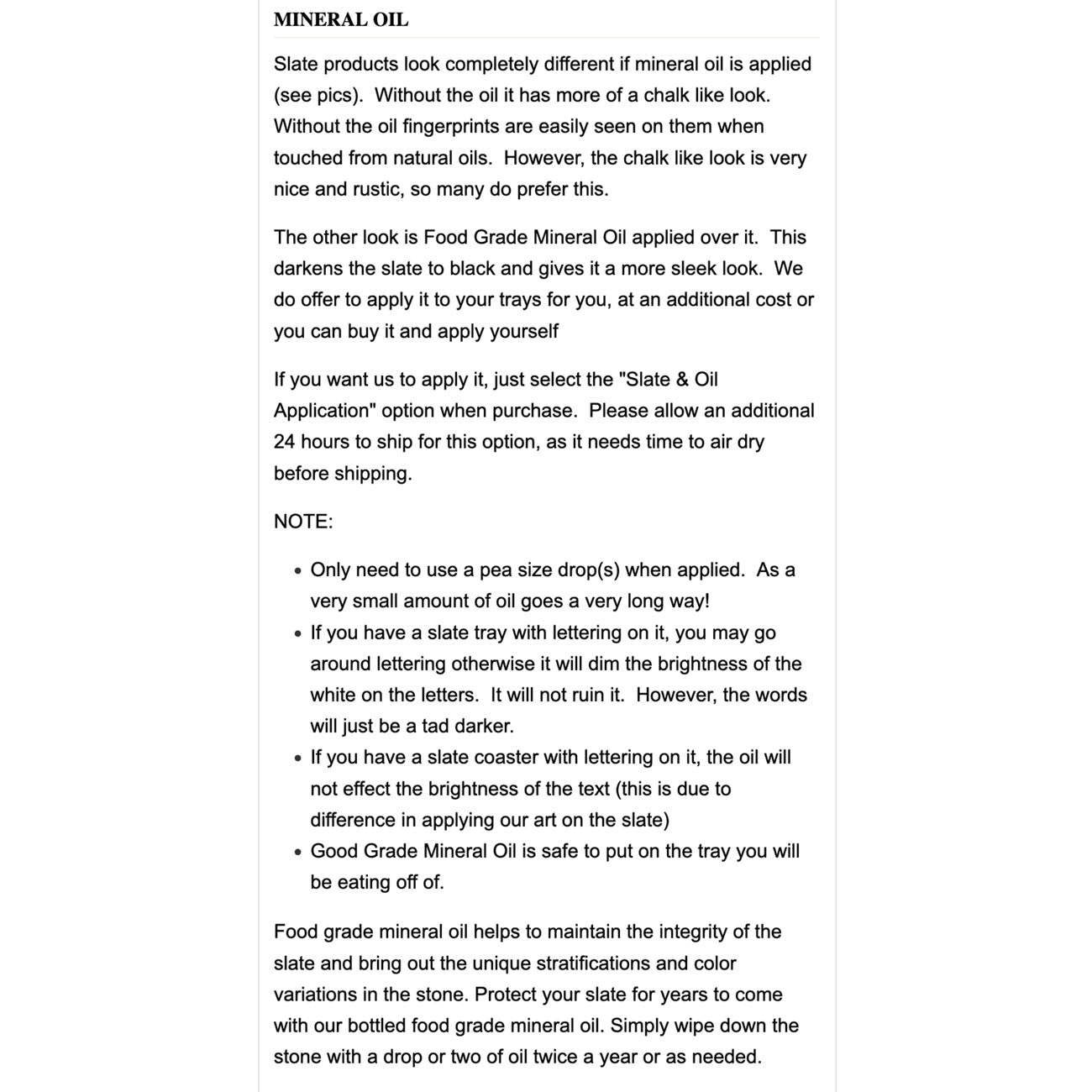 - If you'd like to have chalk to write on it or oil to keep up with the slate, select one of the add-on options.