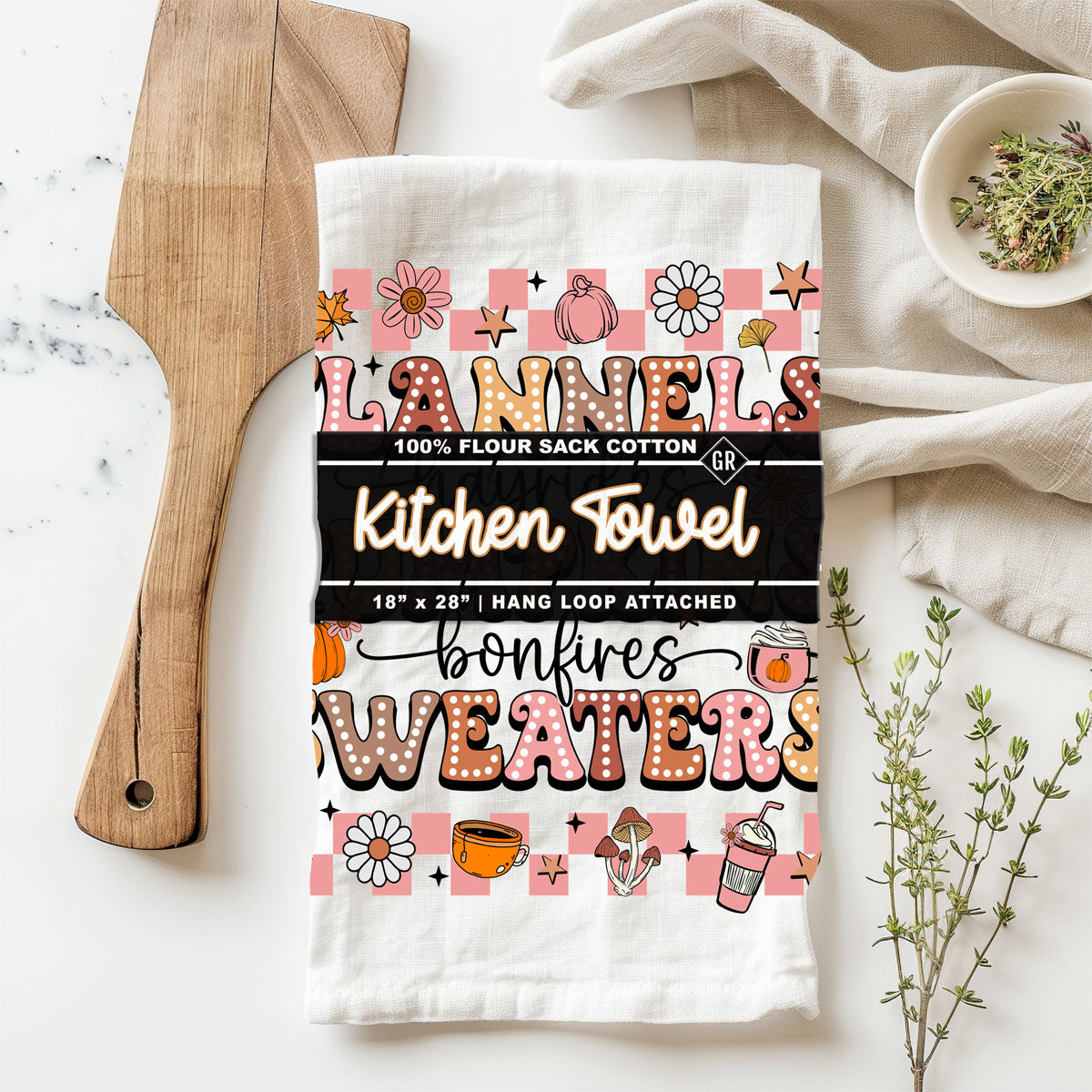 Made from soft, absorbent flour sack cotton, it actually works hard behind all that cuteness: drying dishes, cleaning up spilled PSL, and making your oven handle look like it has its own fall outfit.