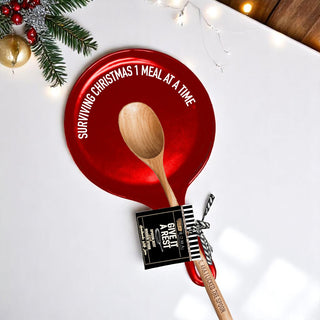 Because sometimes surviving the holiday season requires a sense of humor and a designated spoon landing zone! This isn't just a spoon rest - it's your Christmas survival badge! 🎅